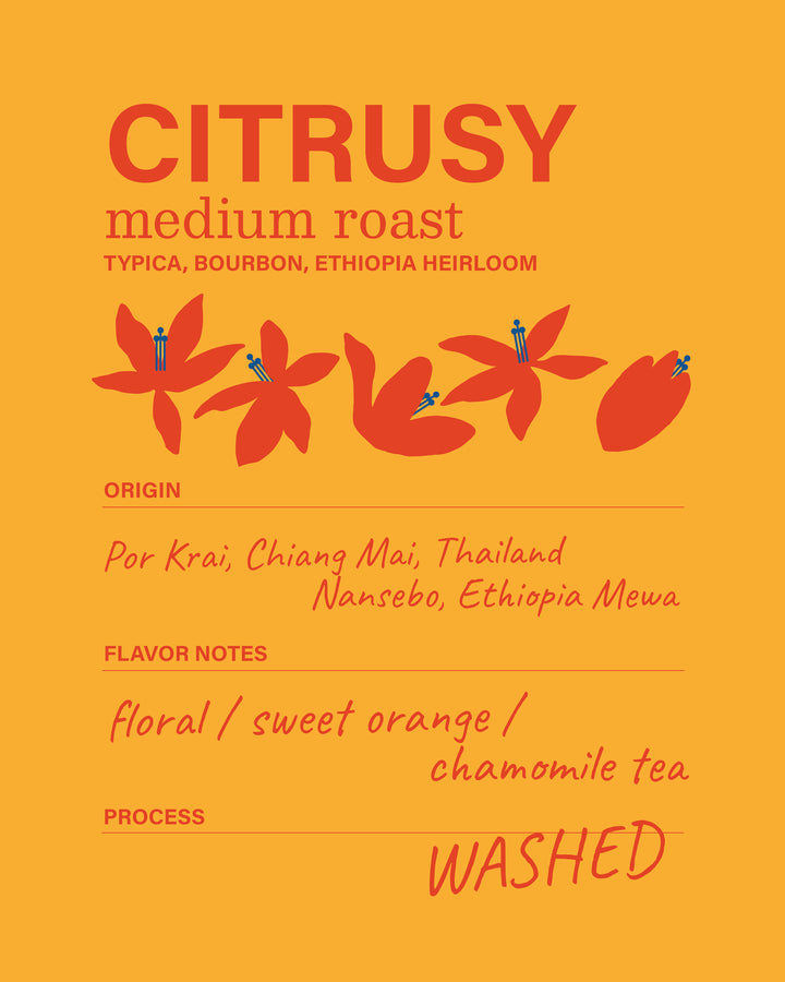 This washed-process blend brings together the floral complexity of Nansebo, Ethiopia with the citrusy sweetness of Palmera Core, Huila, Colombia. Featuring Caturra, Castillo, and Ethiopian heirloom varietals, it offers delicate notes of sweet orange, chamomile tea, and a soft floral finish. Light and refined — best enjoyed black to let its clarity shine.
